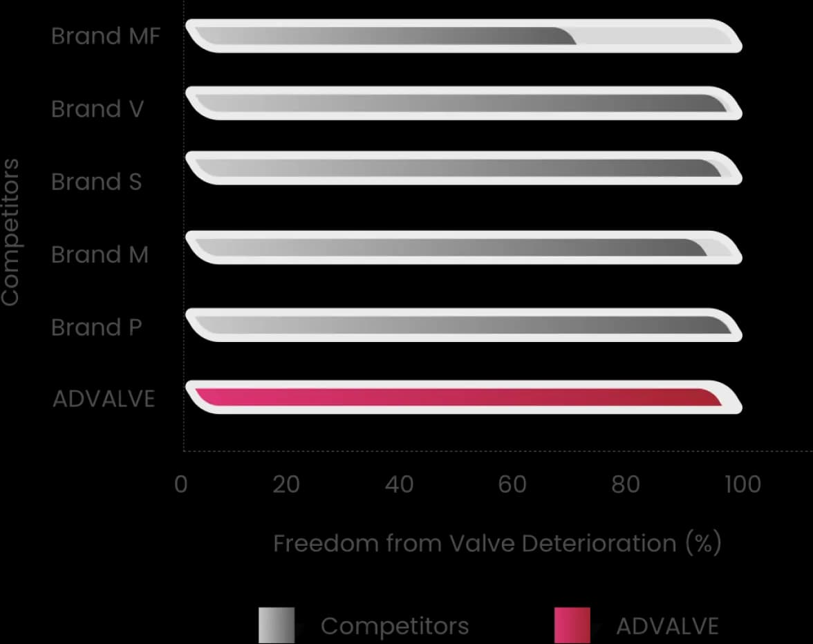 ADVALVE Bioprosthesis is made of bovine pericardial leaflets, shaped using advanced digital fabrication to ensure precise edge integrity and uniform thickness for consistent performance and durability. It features a compound stent combining polypropylene and superelastic shape-memory alloy, delivering structural stability and adaptive fit within the native anatomy.